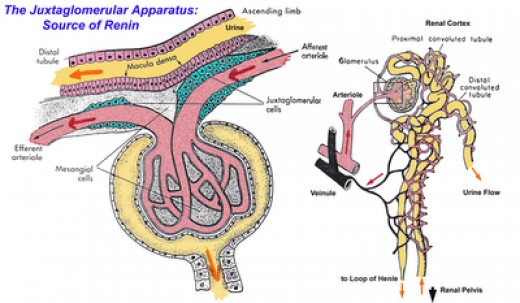 A change in blood pressure is sensed by the cells of the juxtaglomerular apparatus (another portion of the nephron) which secretes renin. Renin converts the protein angiotensinogen into…wait for it…angiotensin. This is the substance that signals the adrenal cortex to do its aldo thing in the first place. Sounds like one of them crazy feedback loops to me (another article I promise).