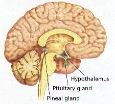 Pituitary AkA the Hypophysis(anterior & posterior) – which hangs out on the lower fore brain, riding shot gun with the hypothalamus just a few centimeters away from the spinal chord.